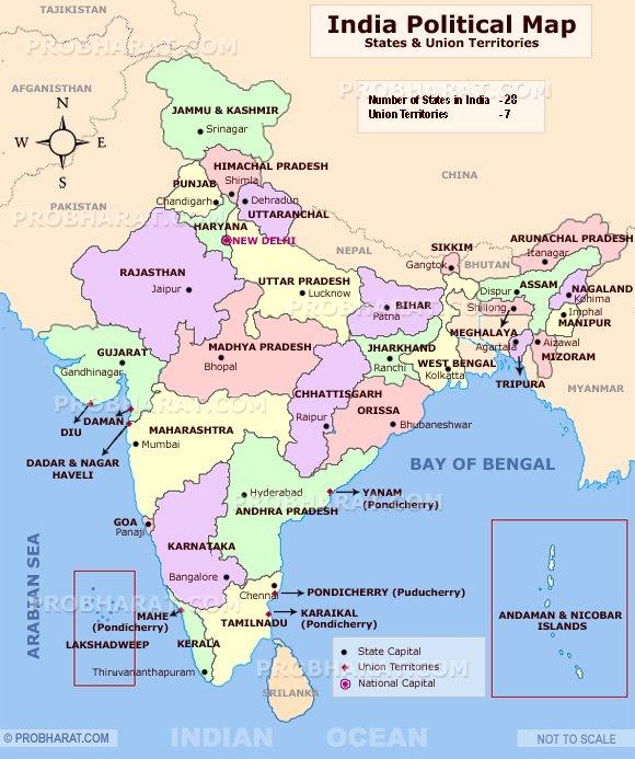 India map with capitals