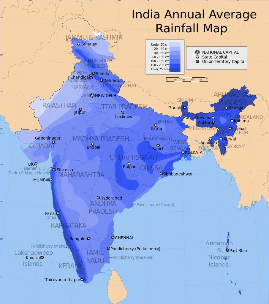 India rainfall map. Rainfall map of India (Southern Asia - Asia) to print. Rainfall map of India (Southern Asia - Asia) to download.