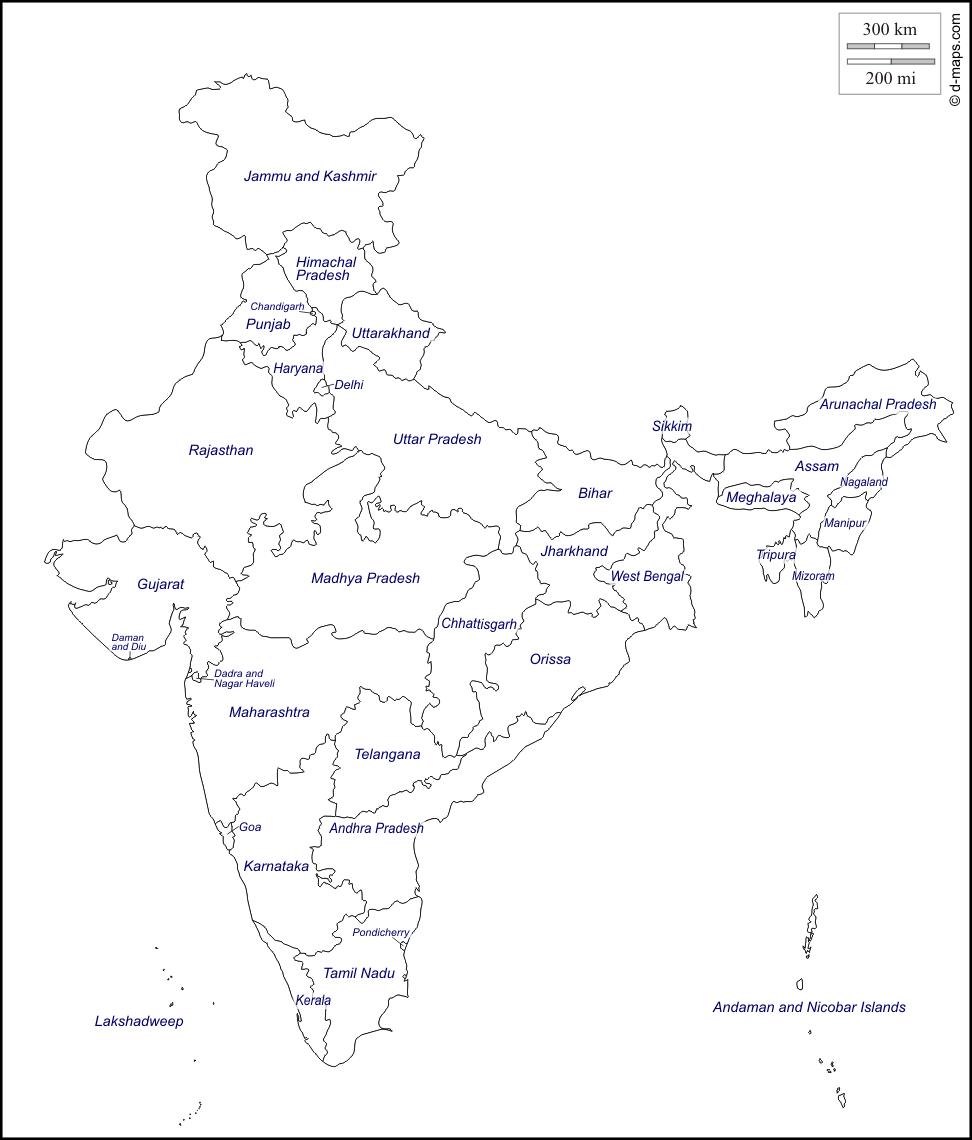India outline map with states